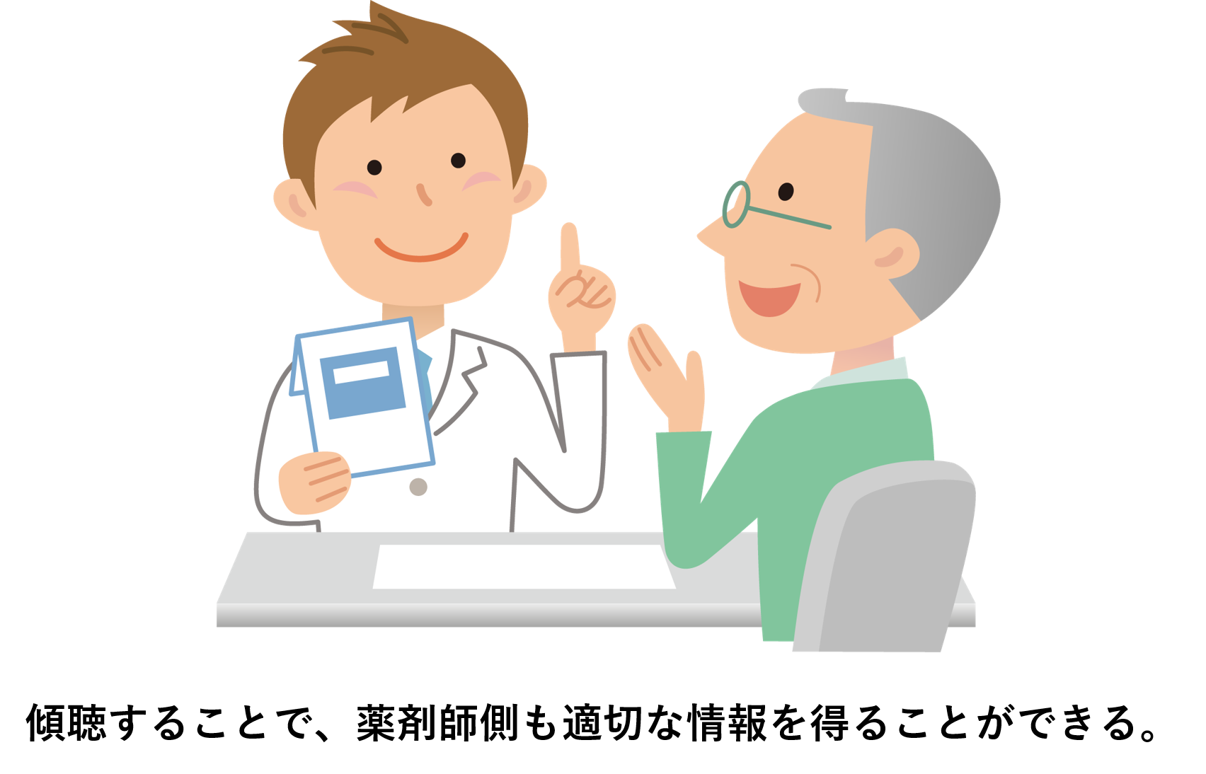 傾聴することは患者さんだけのメリットではなく、薬剤師側も適切な情報を得て、情報提供につなげることもできるのです。