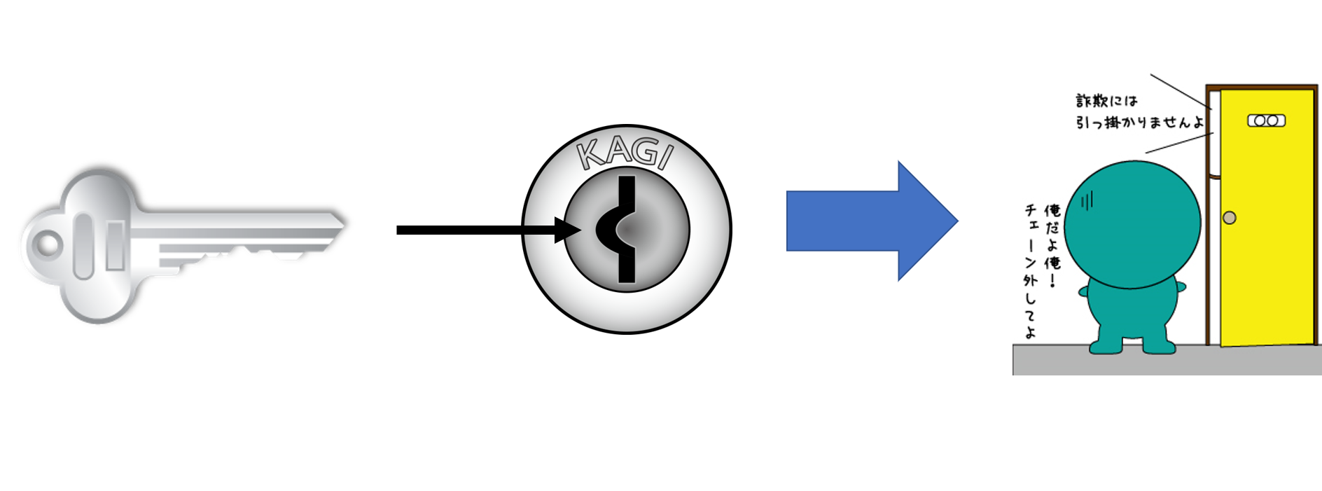 先ほどのカギと鍵穴の例を再び思い出してください。今度は鍵穴と、チェーンの扉だとしましょう。本物のカギで鍵穴は空きますが、チェーンがあると少ししかあけることが出来ず、完全には扉は開きません。