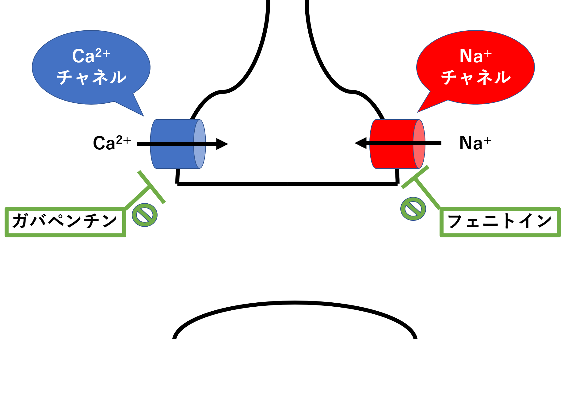 Ca2+チャネルを阻害しますが、ガバペンチン(ガバペン)とは違い、シナプス後ニューロンのT型Ca2+チャネルを阻害します。