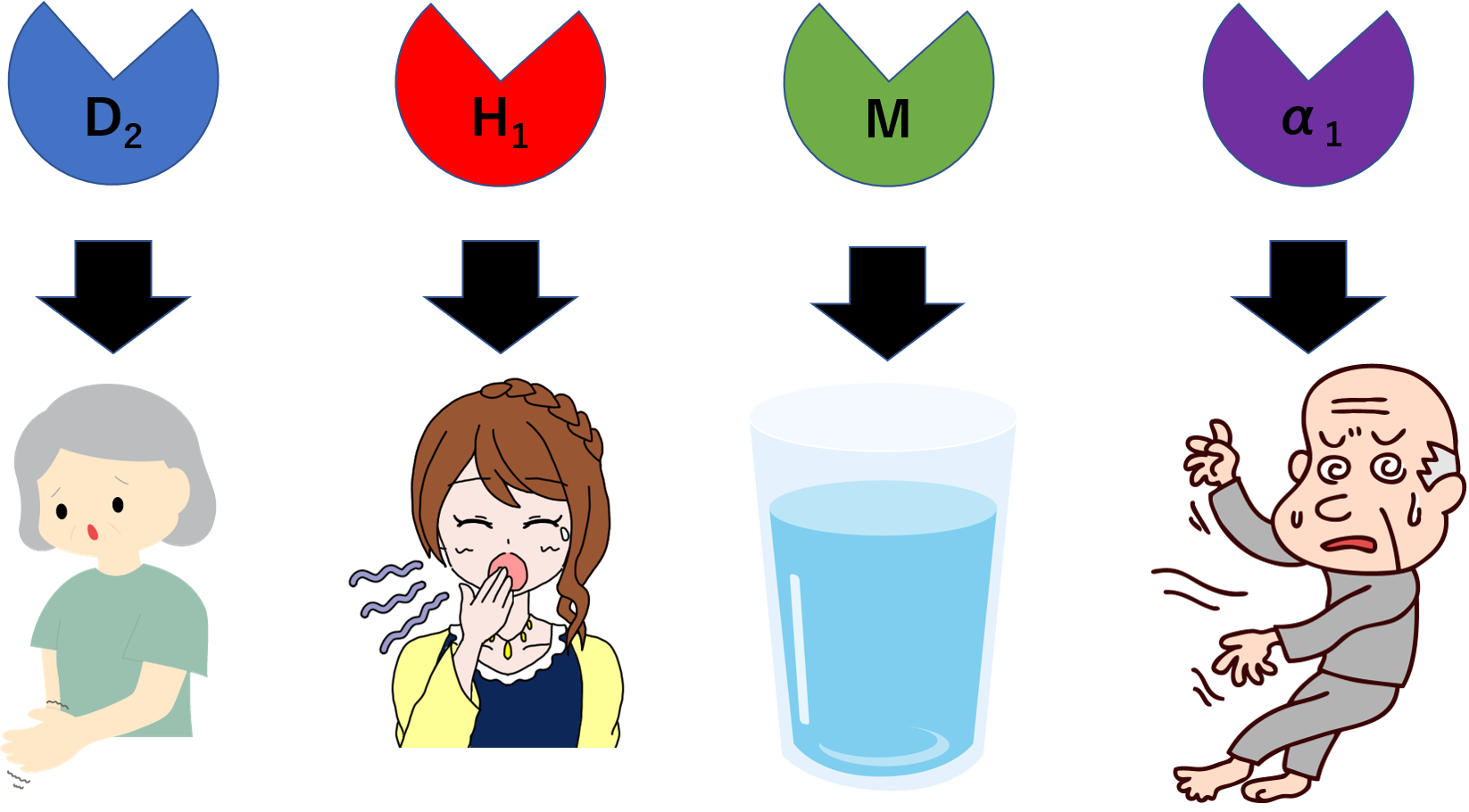 D2受容体以外にもH1受容体、M受容体、α1受容体なども遮断することがあります。それゆえ以下のような副作用などが出ることがあります。