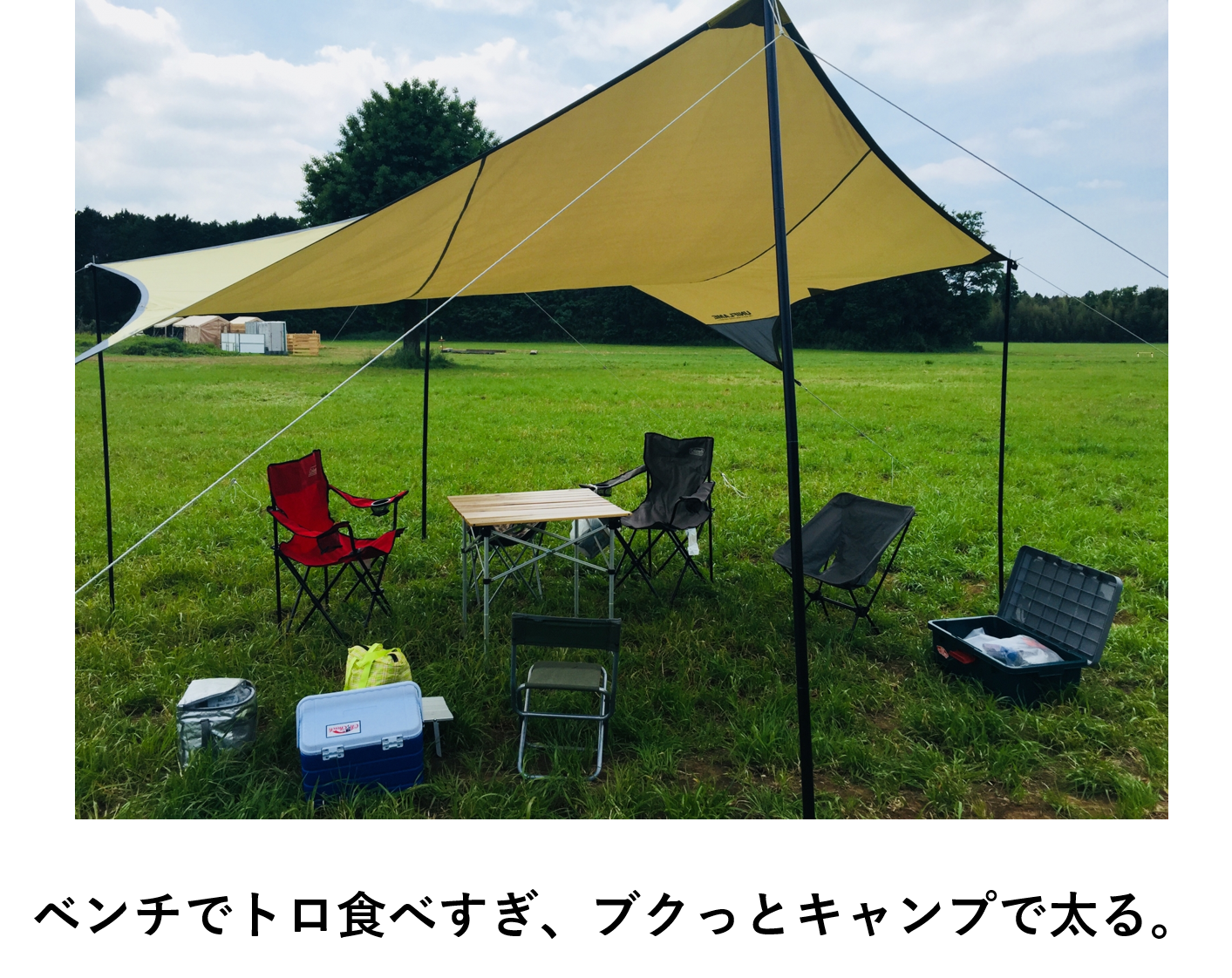 トロをベンチで食べすぎてしまったために、キャンプでブクブク太ってしまったというお話です。