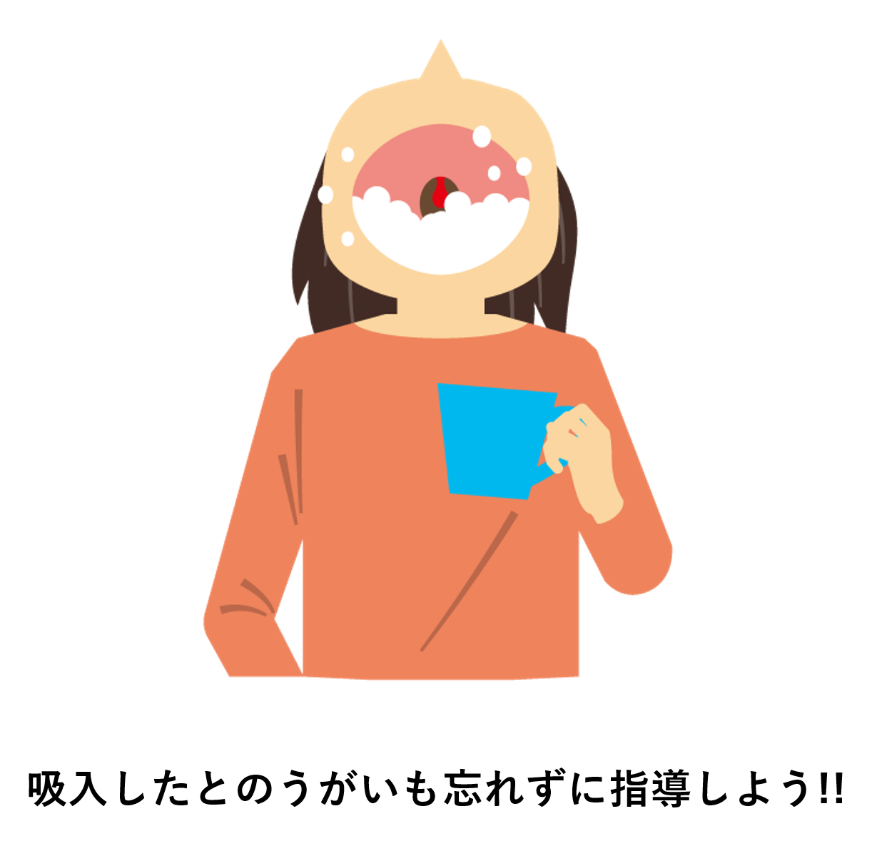 他の吸入薬でも添付文書上、記載されていることもありますが、特にICSは、嗄声やカンジダを防ぐためにも、うがいの指導を忘れてはなりません。