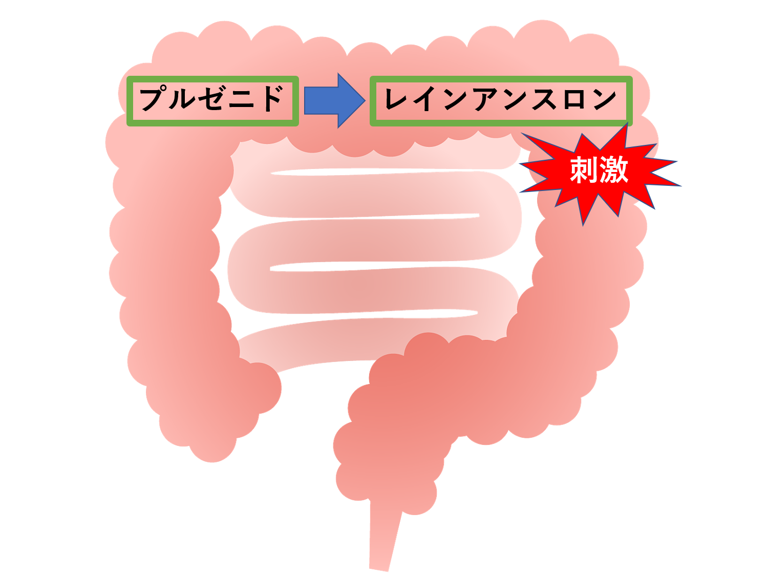 これらの薬は、腸内細菌の作用で、レインアンスロンという物質になります。生成したレインアンスロンは、大腸を刺激することで大腸の運動を促進します。