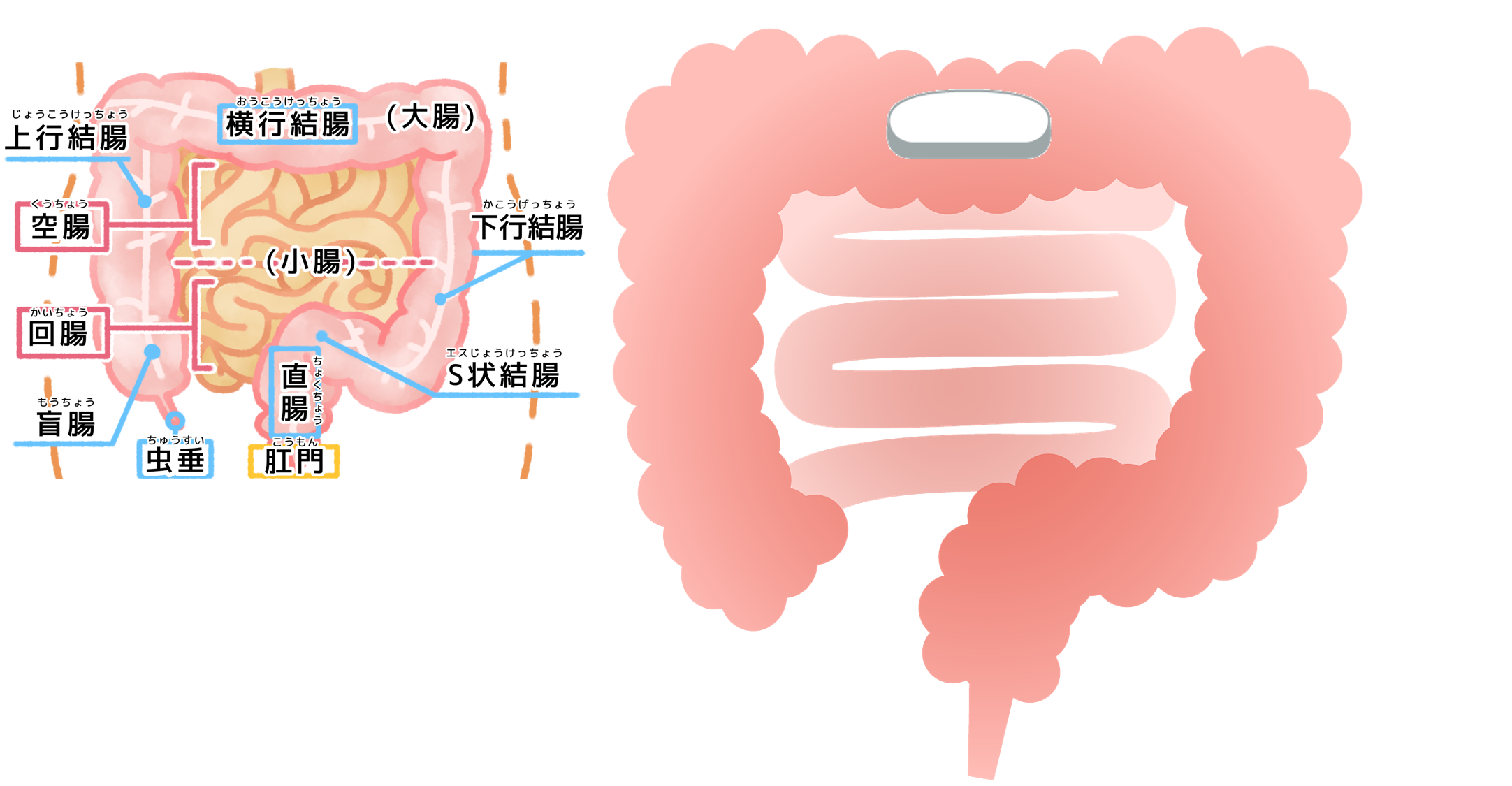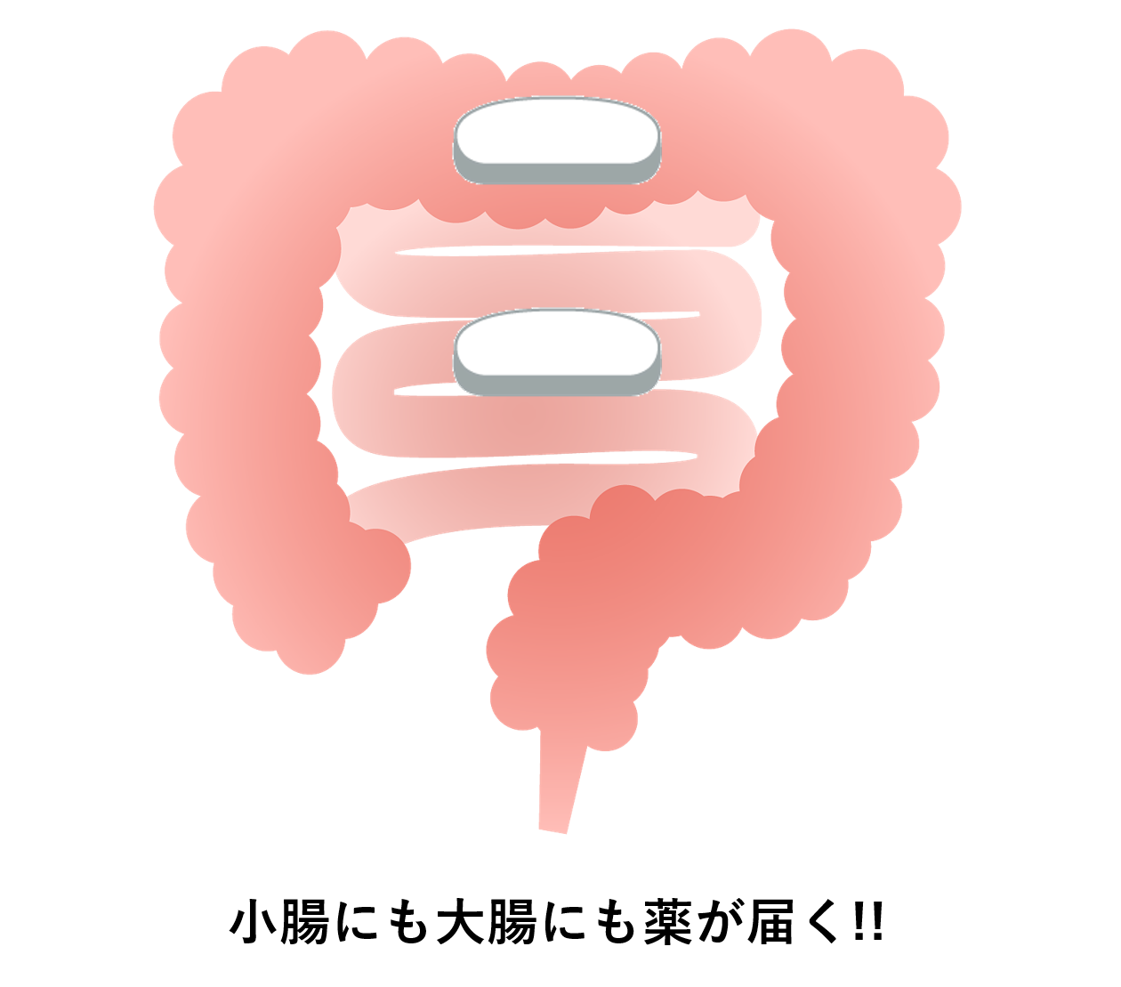 こちらもコーティングが施されていて、回腸末端から大腸にかけて、薬が放出されるようになっています。よって下部消化管によく効くように作られています。