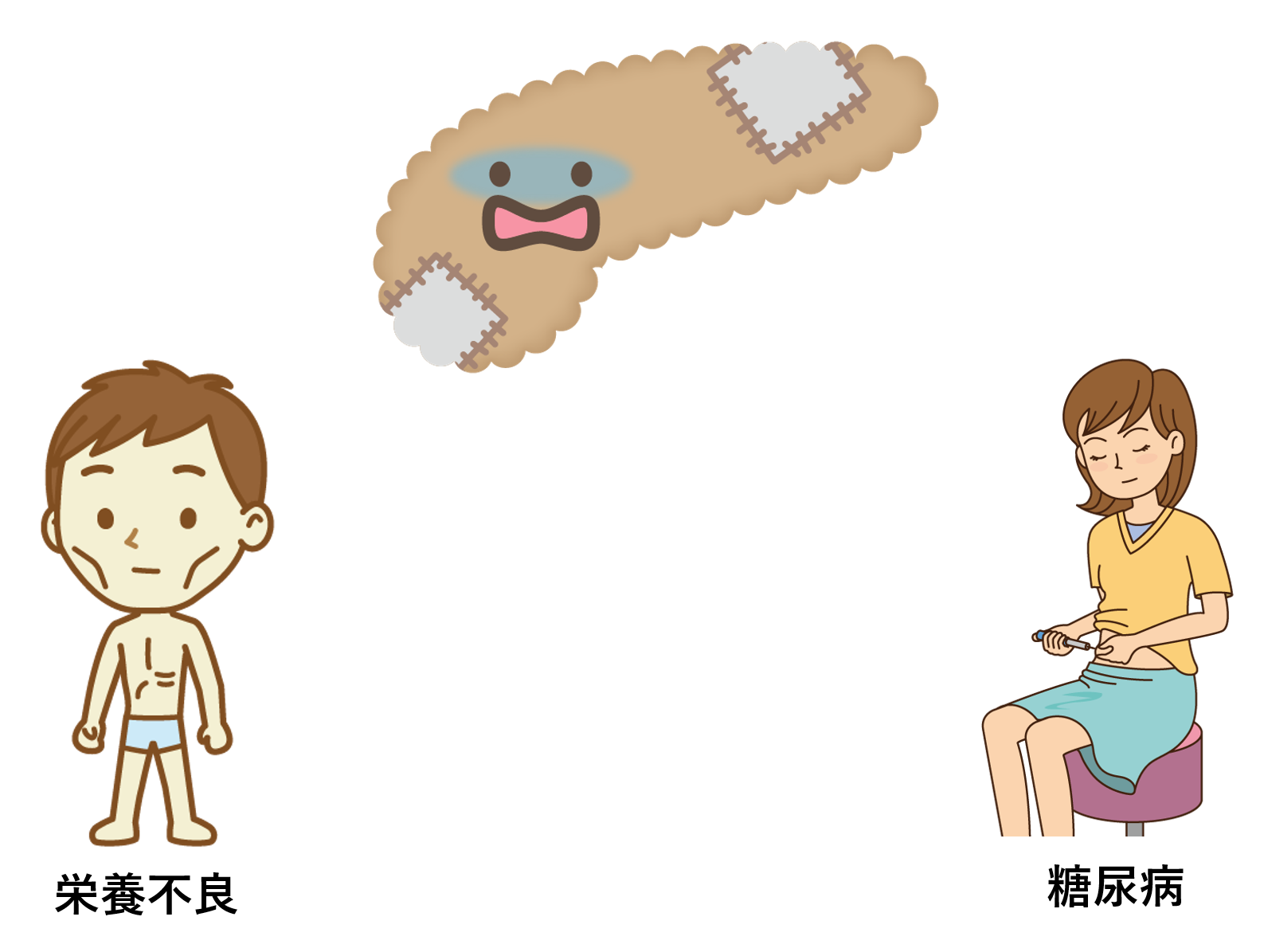 膵炎となり、消化がうまくいかなくなると食べ物が分解できなくなり、未消化の便が出てきたり、栄養が吸収できなくなるので栄養不良となることもあります。