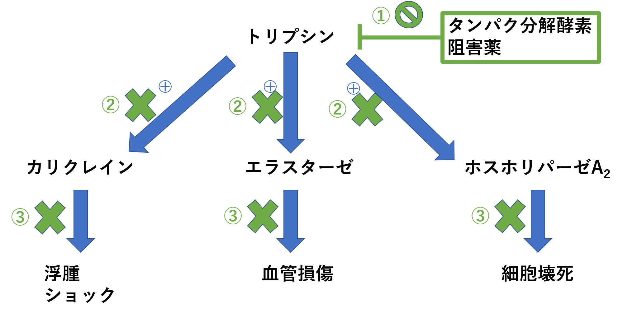 これらの薬はトリプシンなどのタンパク分解酵素を阻害し効果を示します。