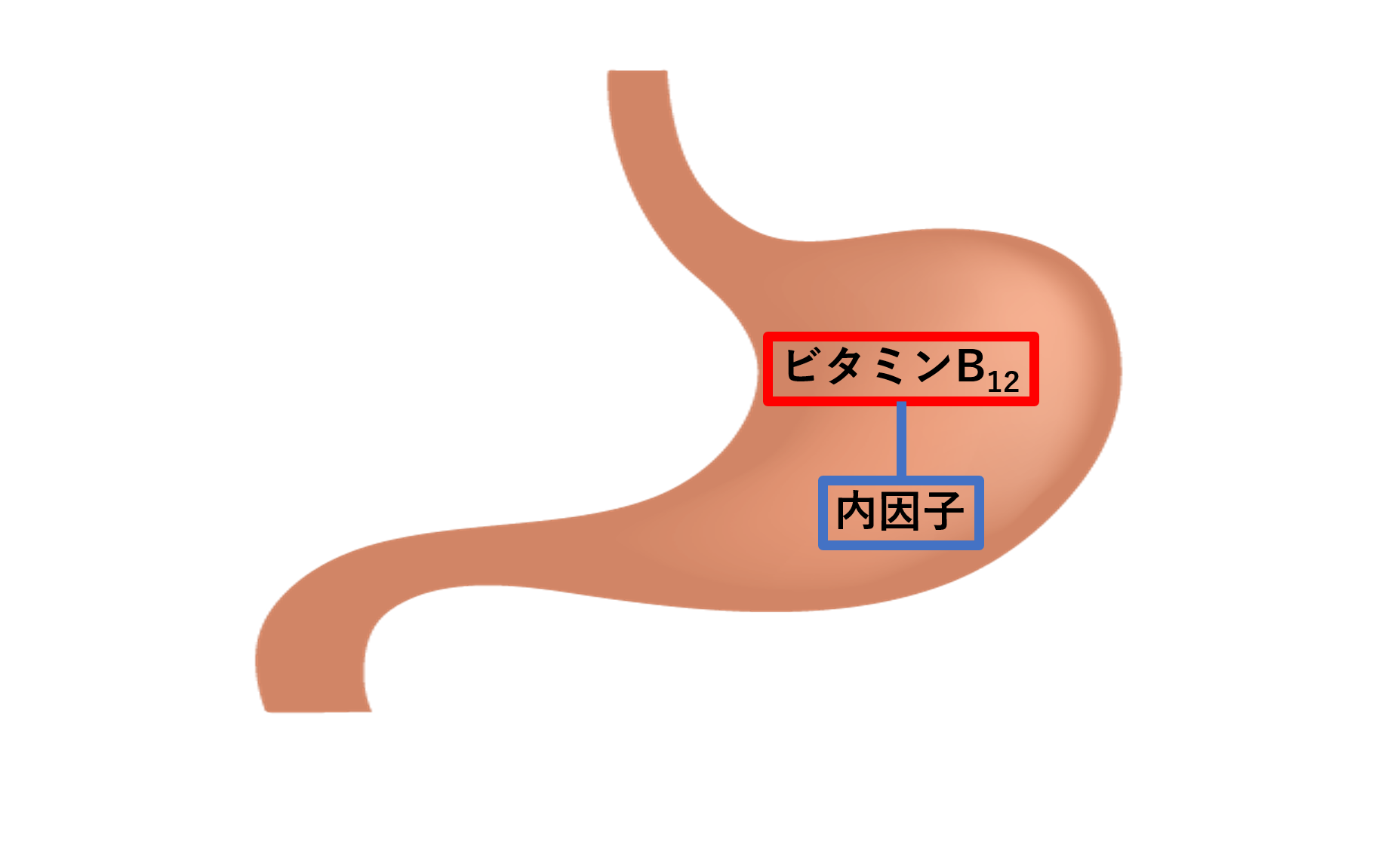 ビタミンB12が吸収されるには、胃の壁細胞から分泌される内因子と呼ばれるタンパク質が必要です。内因子が不足しビタミンB12の吸収が抑制されると巨赤芽球性貧血(悪性貧血)が起こりやすくなります。内服だと吸収が悪いため、注射薬が適応となります。