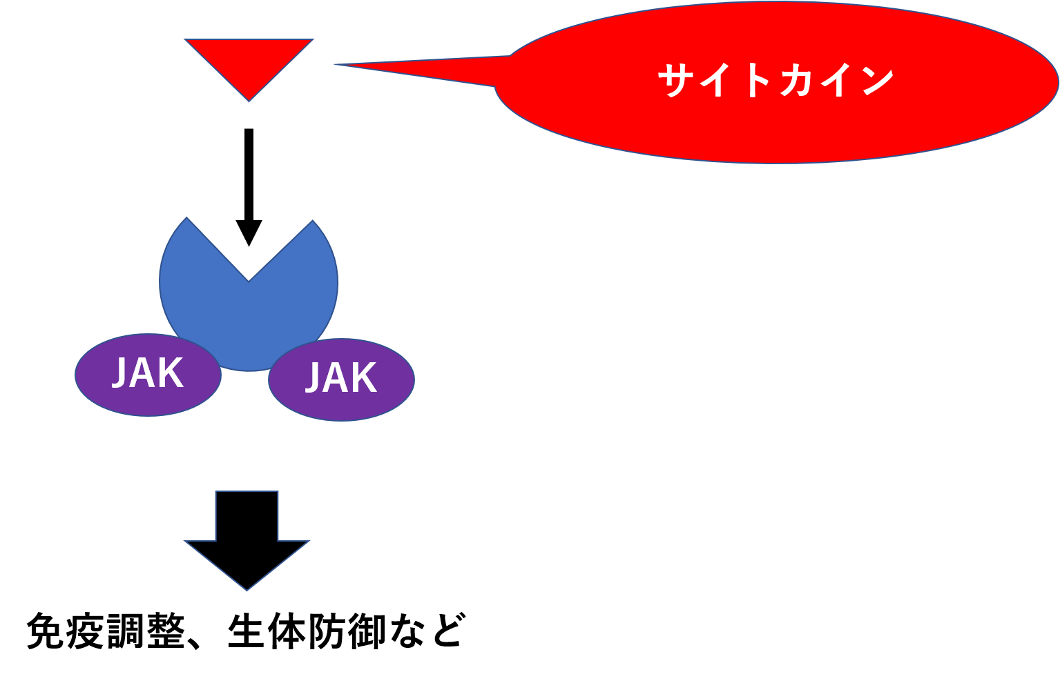 炎症性サイトカインが受容体にくっつくと、ヤヌスキナーゼ(JAK;Janus kinase)を介してシグナルが伝達されていきます。