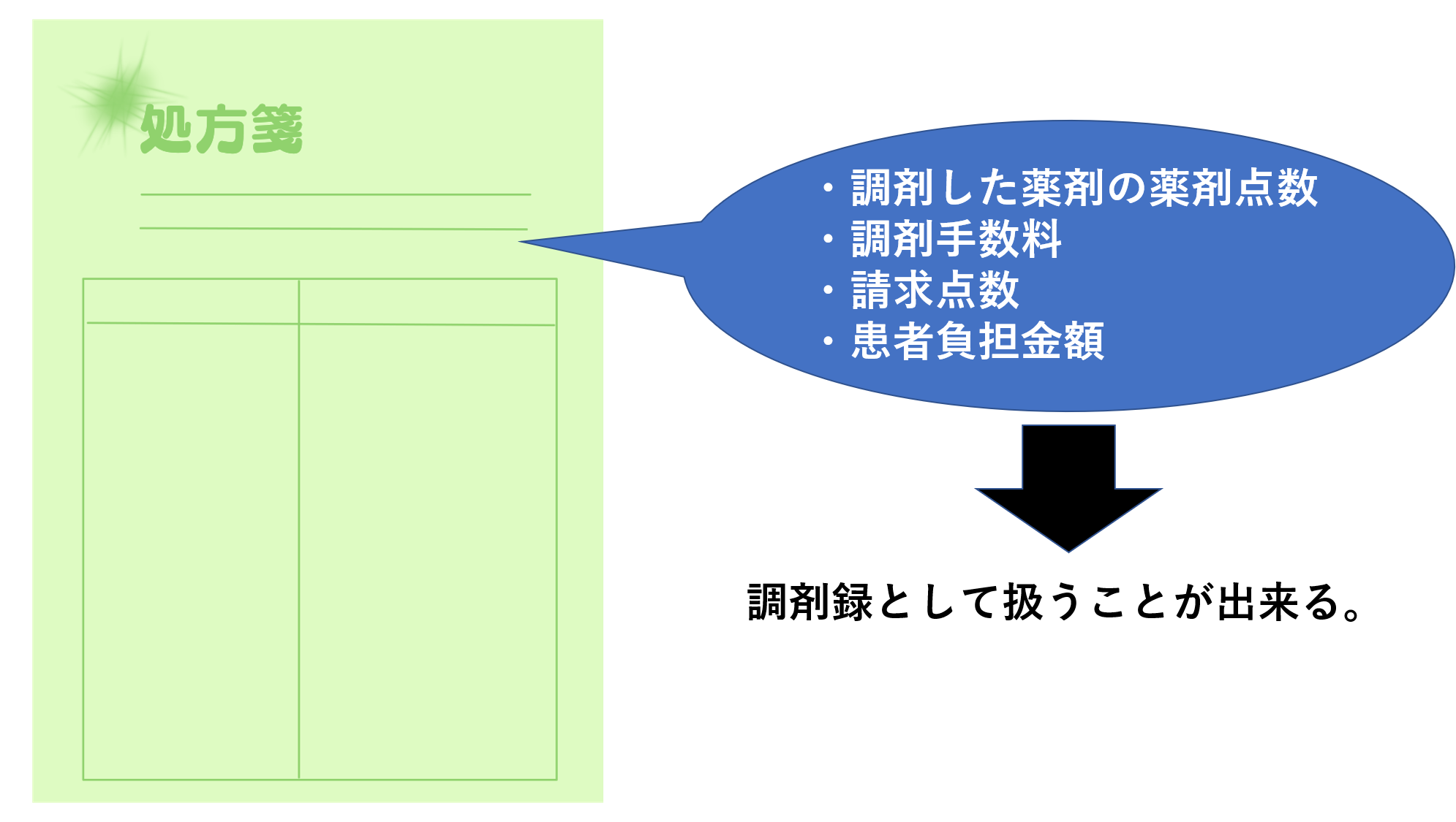 かなり多くのものがあるように見えますが、調剤済みとなった処方箋に調剤録と同様の事項を記入したものをもってかえることができるとされています。よって、調剤済みの処方箋の裏面に、調剤した薬剤の薬剤点数、調剤手数料、請求点数、患者負担金額を記載することで調剤録として利用できます。しかし、現実問題として入力ミスなどがあり、調剤録の再発行が必要な時などもあるので、私の薬局では処方箋と調剤録は分けて記録しています。