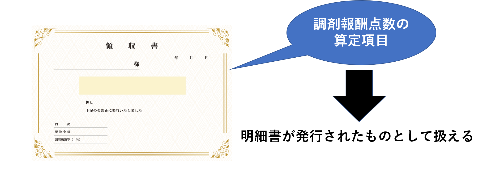 なお領収書に調剤報酬点数の算定項目がわかるように記載されていれば、明細書が発行されたものとして扱えます。
