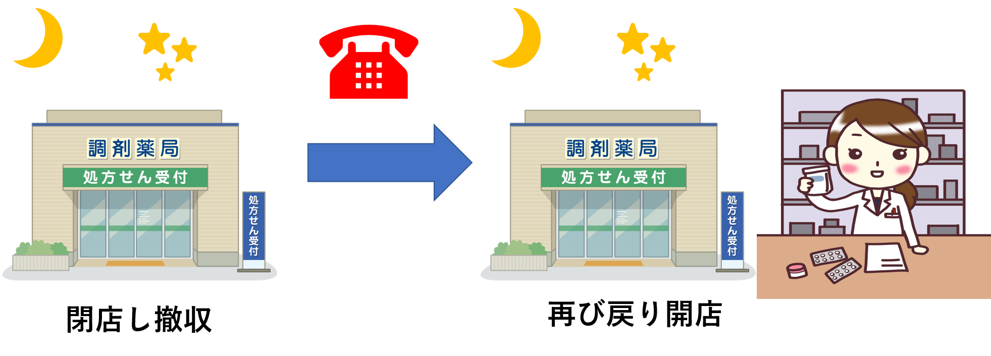 時間外、休日、深夜加算は一度閉店した薬局をわざわざ開け直して、調剤した場合などにとれる加算であるため、めったにとれないことをまずイメージしてください。