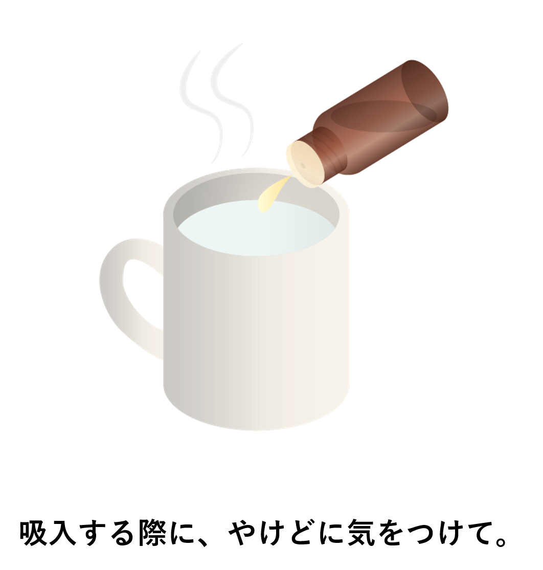 マグカップなどに熱めのお湯を入れて、その中に精油を1、2滴垂らします。そして出てくる湯気に顔を近づけて香りを吸入します。