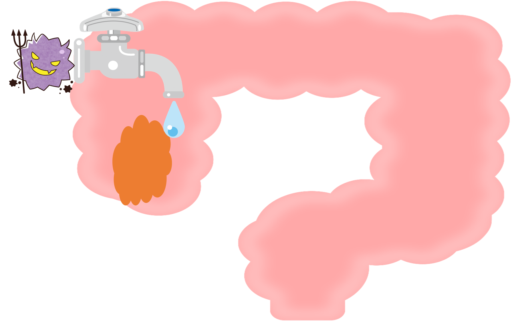 腸管の機能障害により大腸での便の通過時間が短くなり、便から十分な水分を吸収できず下痢を起こしている状態です。