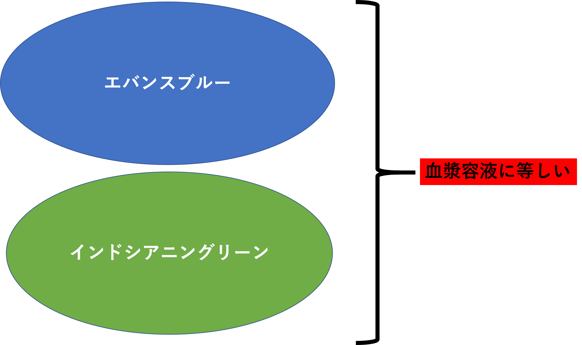 アンチピリンはクソ暗記するしかないですが、エバンスブルー、インドシアニングリーンは色つながりで覚えましょう。ブルー、グリーン、血=赤といった感じです。