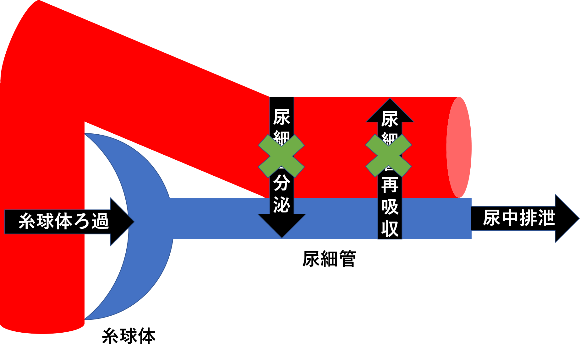 尿中未変化体排泄量=体循環により流入した薬物量・尿中排泄率が成り立ちます。