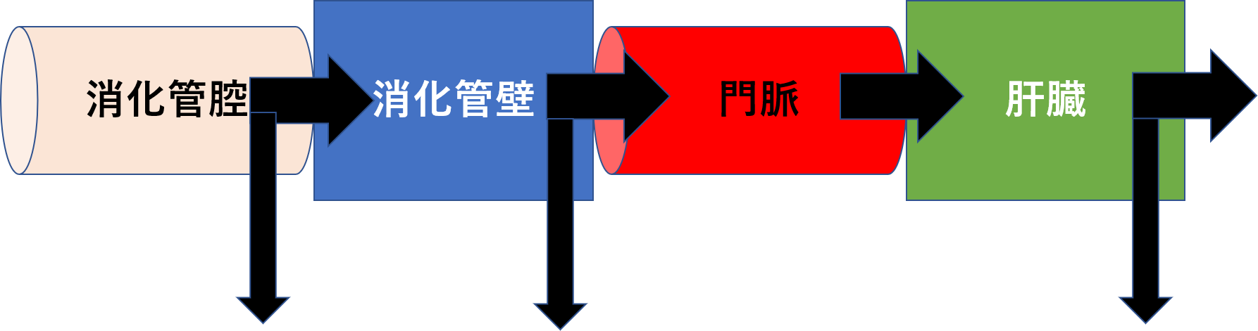 ADMEで学んだように、経口で投与された薬は小腸で吸収されて、門脈へ送られ肝臓で代謝を受けます。