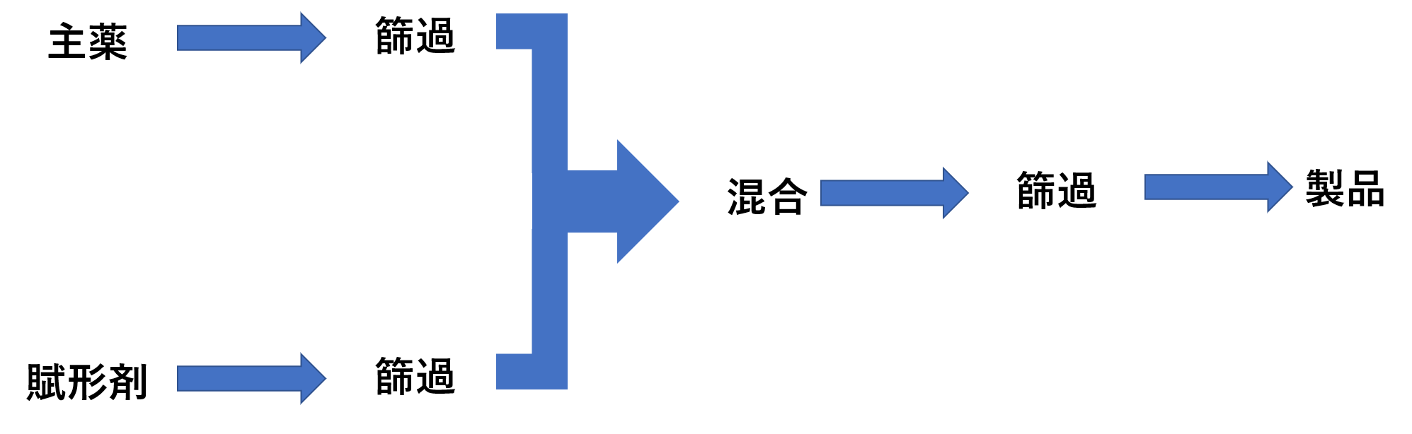 有効成分に賦形剤又はそのほかの添加剤を加えて混和して均質にします。