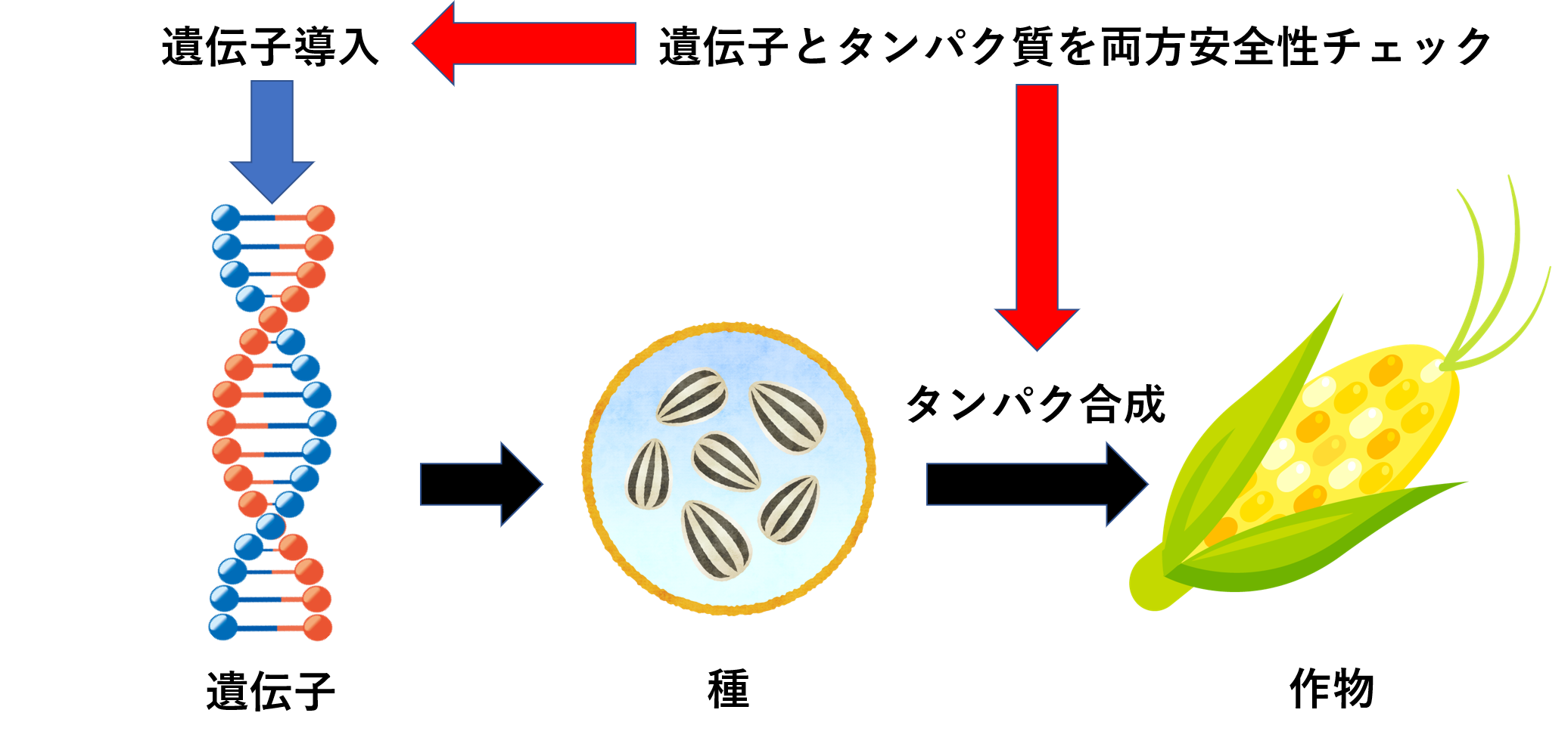 遺伝子組み換え食品は食品衛生法に基づいて食品安全委員会により安全性が審査されています。審査の内容としては、組み込む遺伝子と、組み込む遺伝子によりできるタンパク質などがあります。