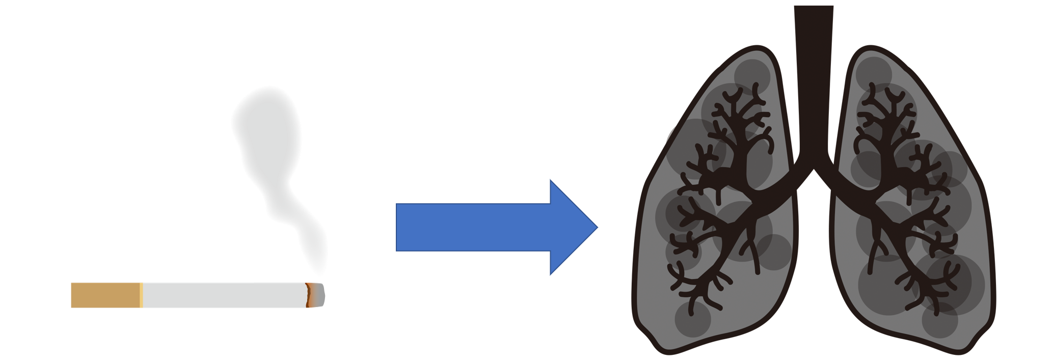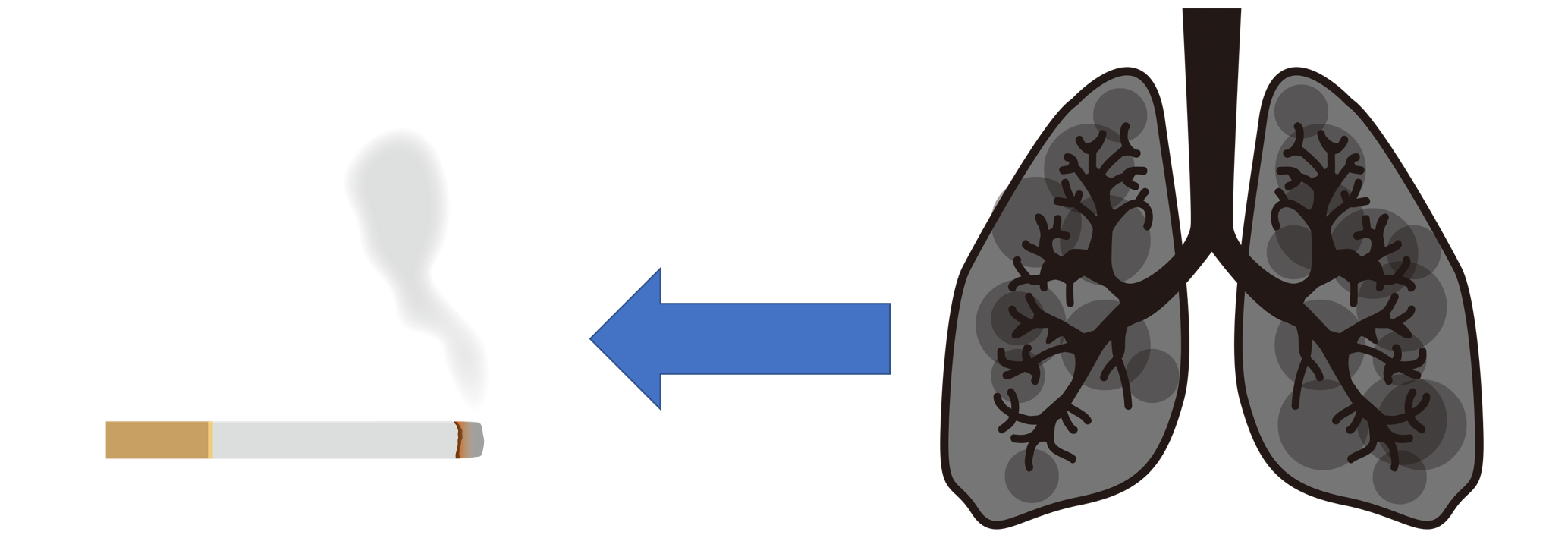 コホート研究の例から先に見ていましょう。一般的にタバコを吸っていると、肺がんになりやすいと言われています。そこで、タバコを吸っている人と吸っていない人が将来肺がんになったかどうかを比較します。
