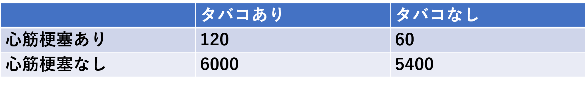 それに対して起こらないオッズは、対照の集団がタバコを吸っていたかどうかとなるので、6000/5400となります。