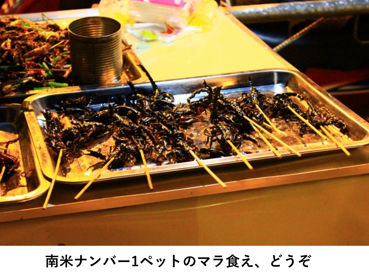 イメージ作りの物語を。南米に旅行に行き、料理屋さんに入りました。しかし、どれがおいしいかわからず、オススメを聞いたところ、人気ナンバー1商品がペットのマラで、すすめられてしまったというお話です。
