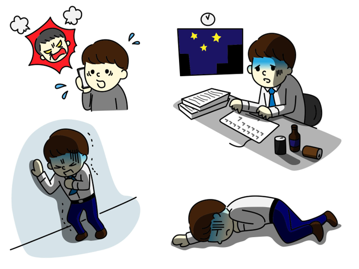 職業病が原因で多くの症状が現れることがあります。職業病には、熱中症、減圧症、騒音性難聴、振動障害、じん肺、アスベスト肺、頸肩腕症候群などがあります。