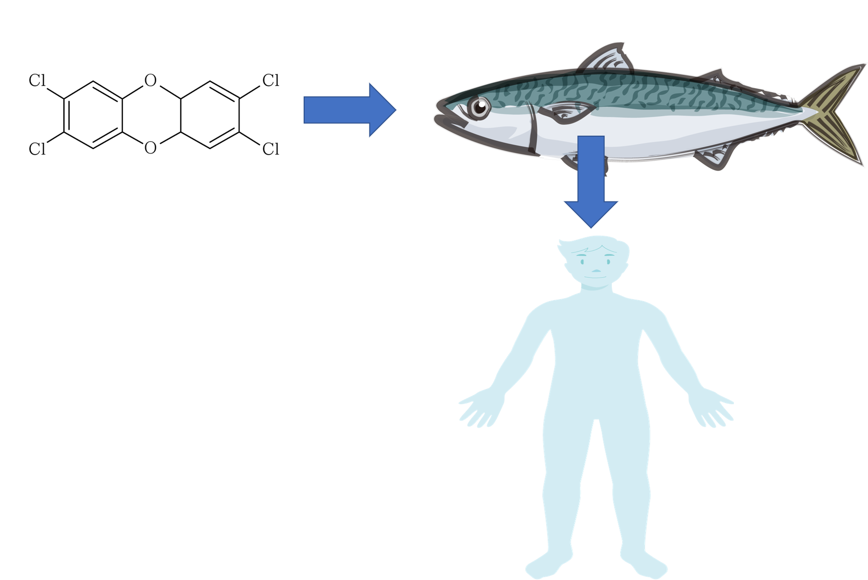 ダイオキシン類の発生原因がごみの焼却だと大気から摂取しているかと思いがちですが、日本の摂取量ではダイオキシン類を摂取した魚介類をヒトが食べることによるものが多いとされています。