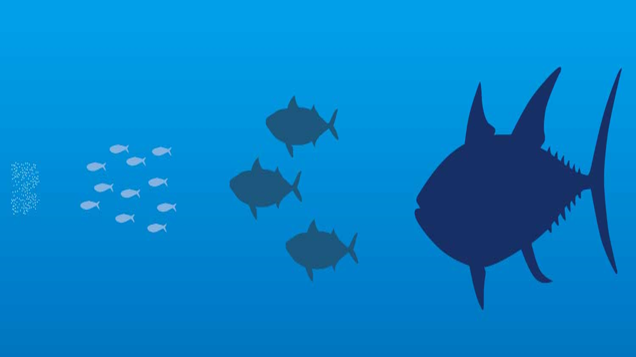 生物の間では食べる、食べられるという関係が連鎖していて、これを食物連鎖と呼びます。例えば、以下のような流れで食物連鎖が起こります。