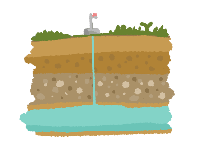 地表水に対して地下水は表に出ていないため溶存酸素が少なくなります。地面を透過するため、地下水は地表水と比べてカルシウムやマグネシウムなどのミネラルを含みやすく、いわゆる硬水となります。地下水は細菌汚染はされにくいですが、微生物が少ないため一度汚れてしまうと、元の状態に戻すのは難しいです。