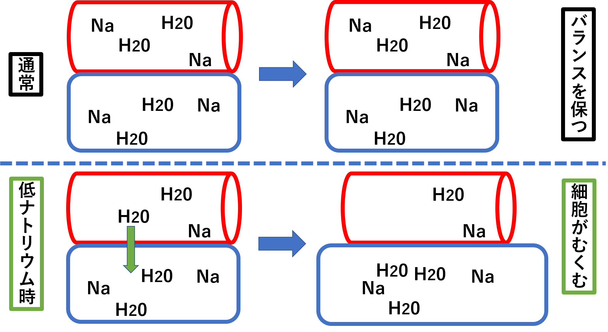 低ナトリウム血症という言葉を聞くと、普通はナトリウムが体内から減っているんだなというイメージをすると思います。しかし必ずしもそうとは限りません。