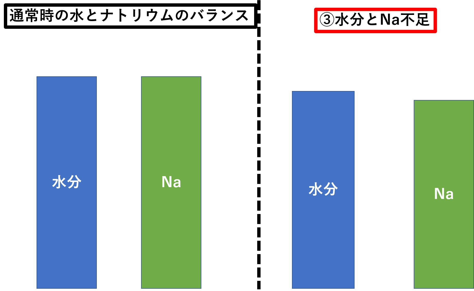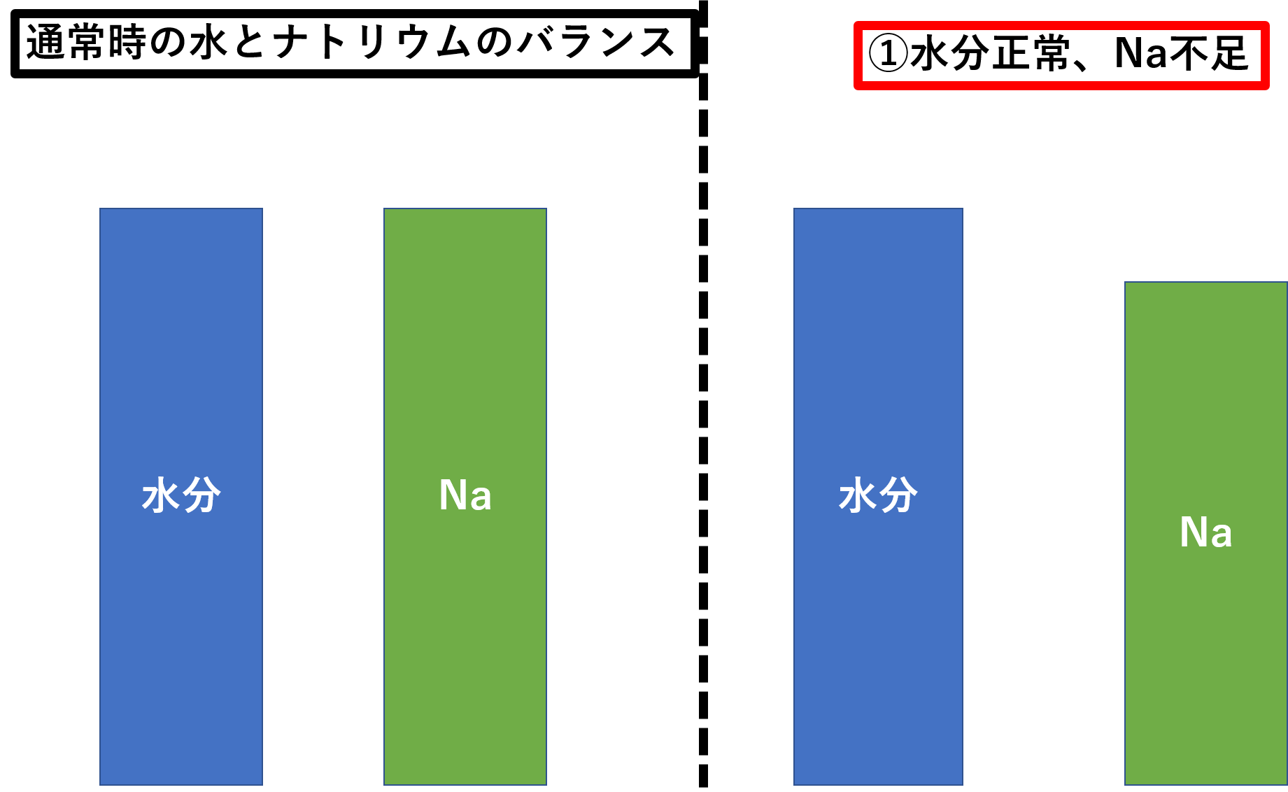 高ナトリウム血症の場合は以下の2つのケースが多いです。