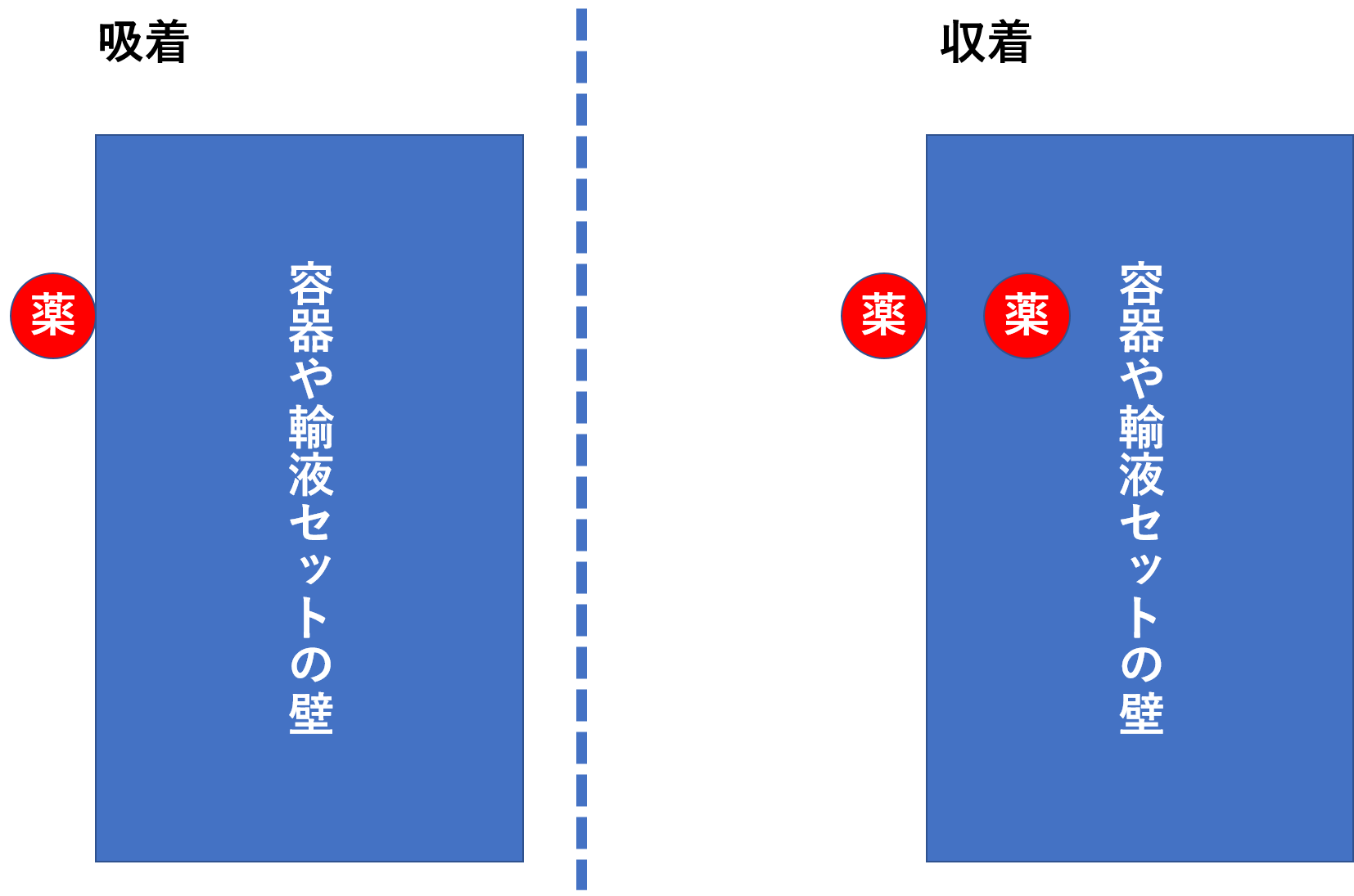 収着は、薬の成分が容器や輸液セットの壁の表面だけでなく、中まで食い込んでいるイメージになります。