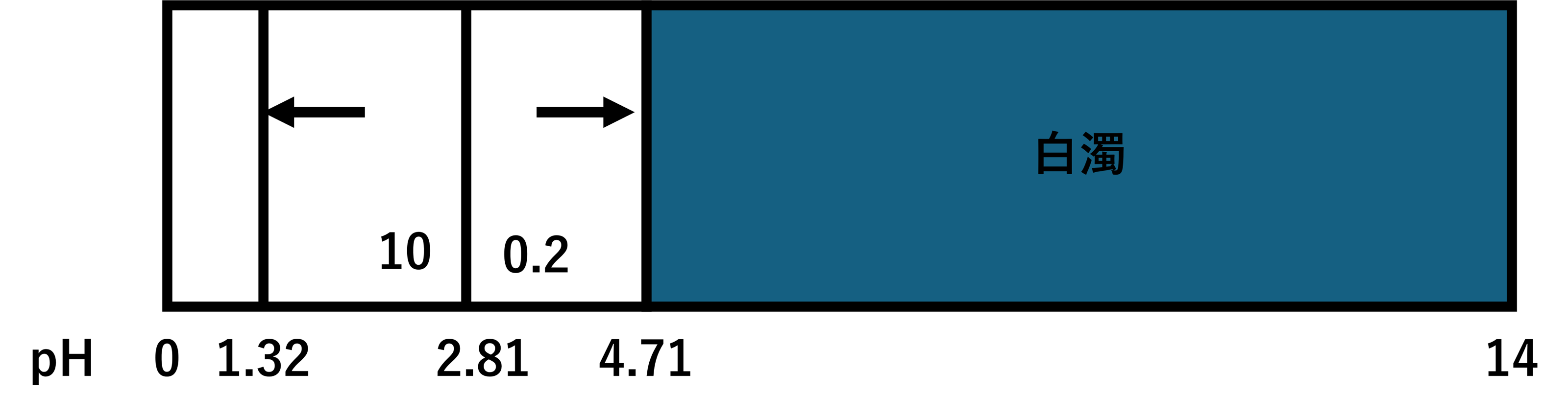 例えば、ビソルボン(ブロムヘキシン)の場合だと以下のようなpH変動スケールとなります。