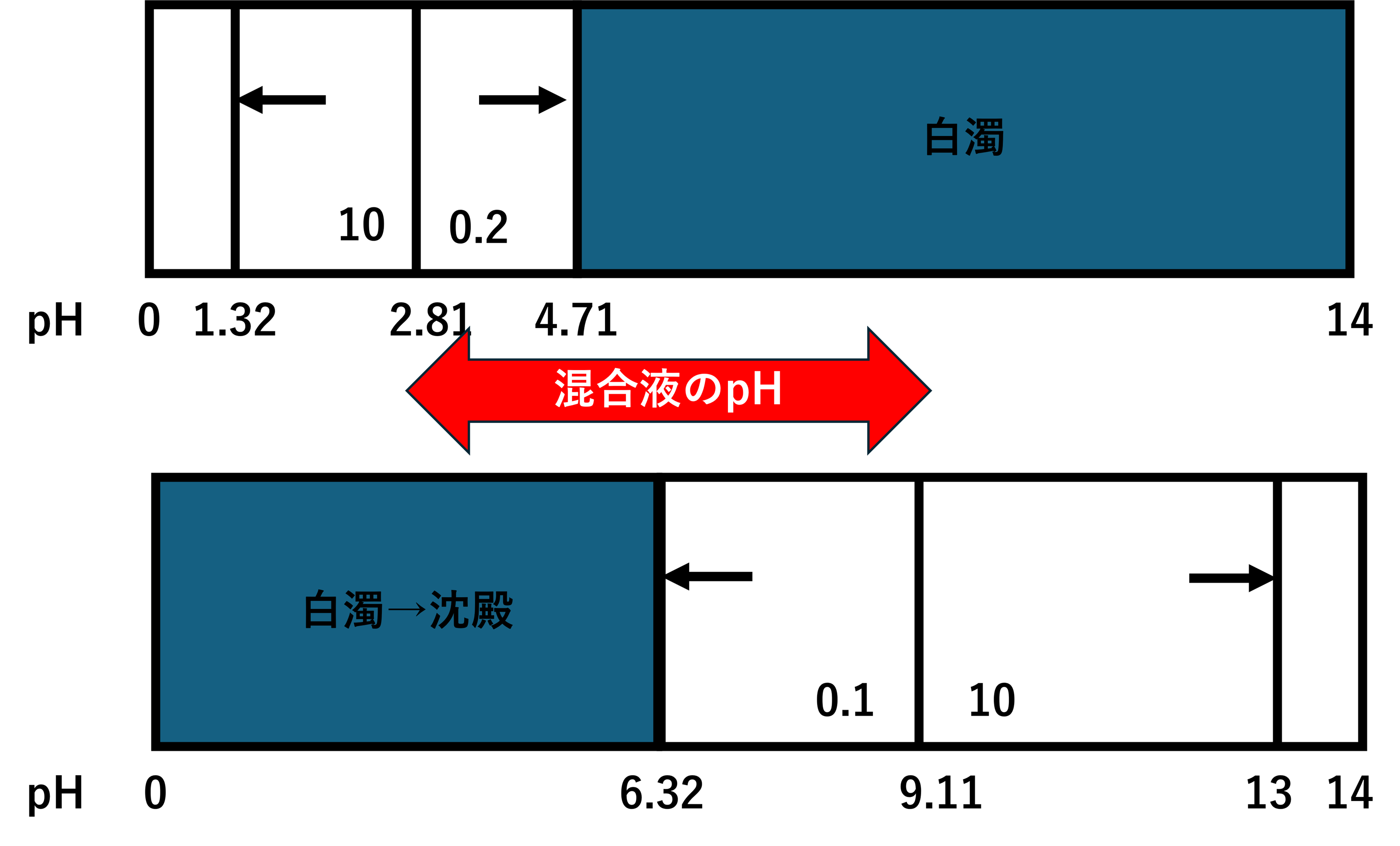 このpH変動スケールの読み方としては以下のようになります。