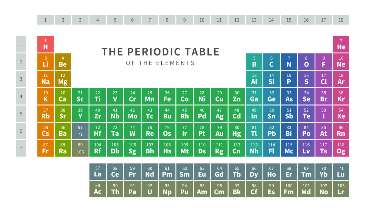 まず電気陰性度、イオン化エネルギー、電子親和力を見る前に周期表について見ていきます。