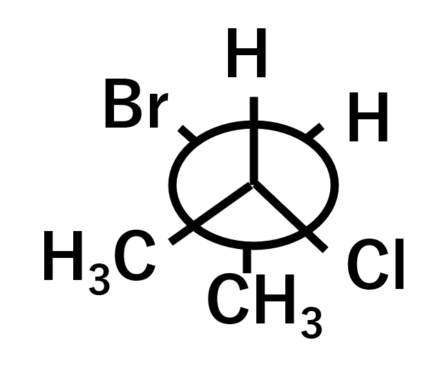 ここまでくると頭の中でできる方はいいですが、できない方はいったんFischer投影式に戻した方が間違えません。少し回転させて書き換えると以下のようになります。
