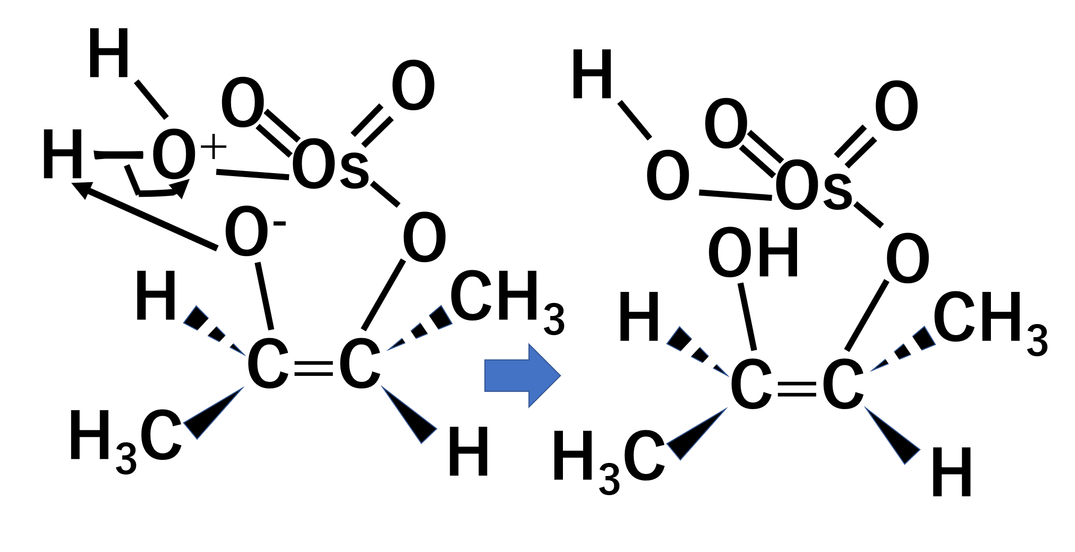 OHがsyn付加します。trans-ブタ-2-エンの1,2-ジオール化の例を見てみましょう。