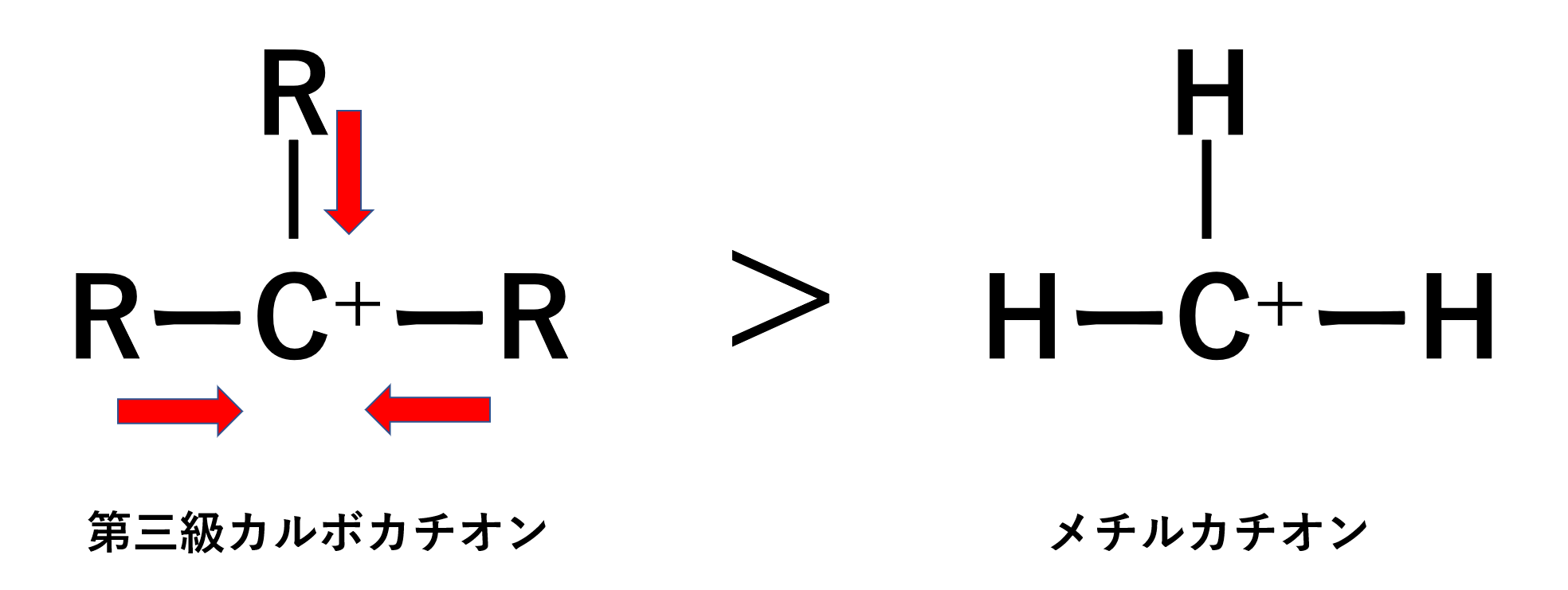 そのためカルボカチオンの安定性は