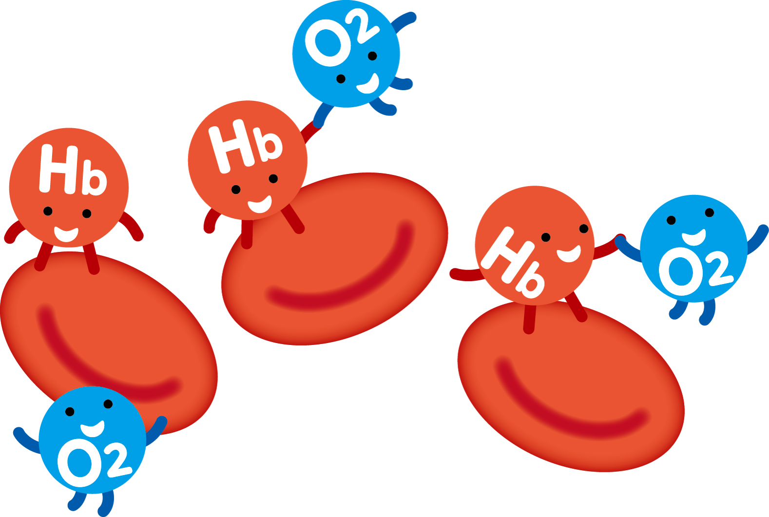 外呼吸に対して、血液と組織細胞との間で行われるガス交換である内呼吸と呼びます。血液中に入った酸素は赤血球のヘモグロビンと可逆的に結合して循環し、組織の近くにくるとヘモグロビンから離れて組織へと移行します。この時血中pHが下がっていたり、二酸化炭素分圧が上がっている状態だと酸素はヘモグロビンから離れやすくなります。