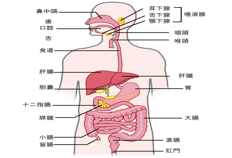 消化器系は食べ物を取り込んで、消化、吸収を行い、不要物を排泄します。まず食べ物が最初に来るのが口腔です。口腔は消化のための準備を行う場所です。歯で食べ物を細かくするイメージの強い口腔ですが、他にも唾液が分泌する役割もしています。唾液は唾液腺から分泌されますが、唾液腺には小唾液腺と大唾液腺(耳下腺、舌下腺、顎下腺)などの種類があります。