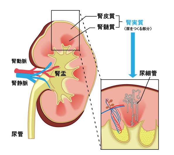 腎臓はそら豆のような形をしていて、以下のような働きをしています。