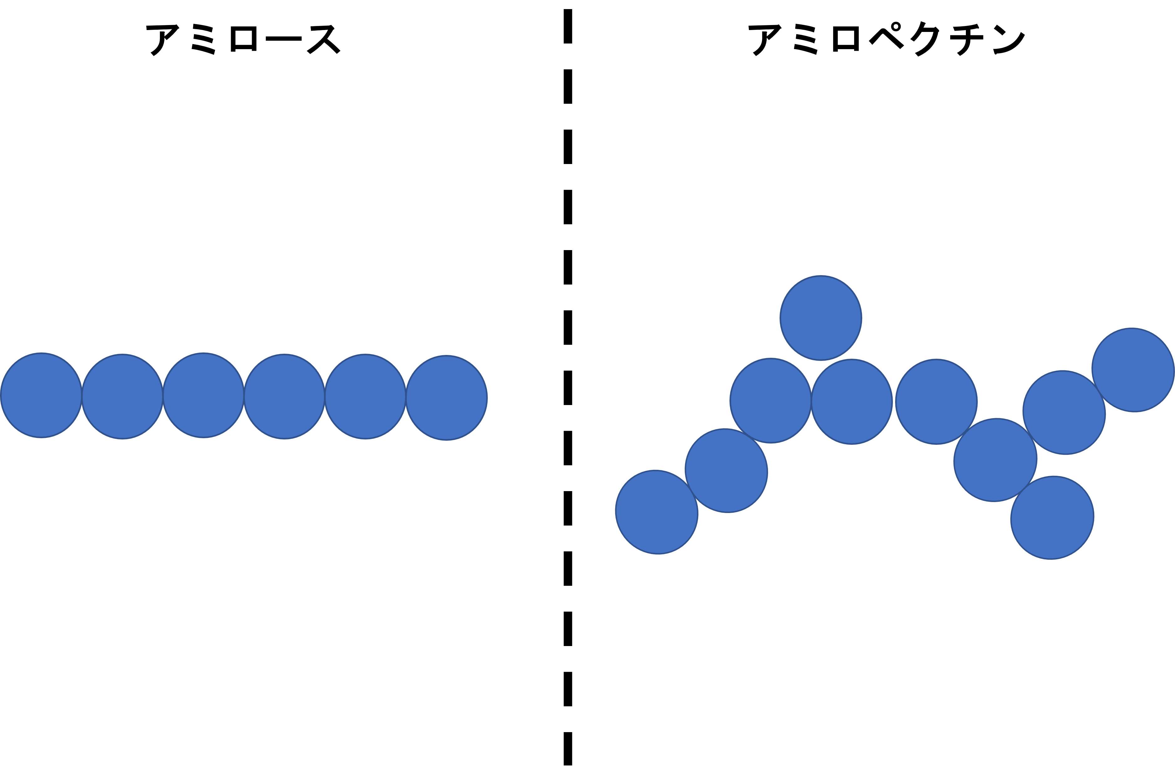 多糖類はその名の通り、単糖が多くつながってできたものです。結合する糖によって、以下の2つに大きく分けられます。