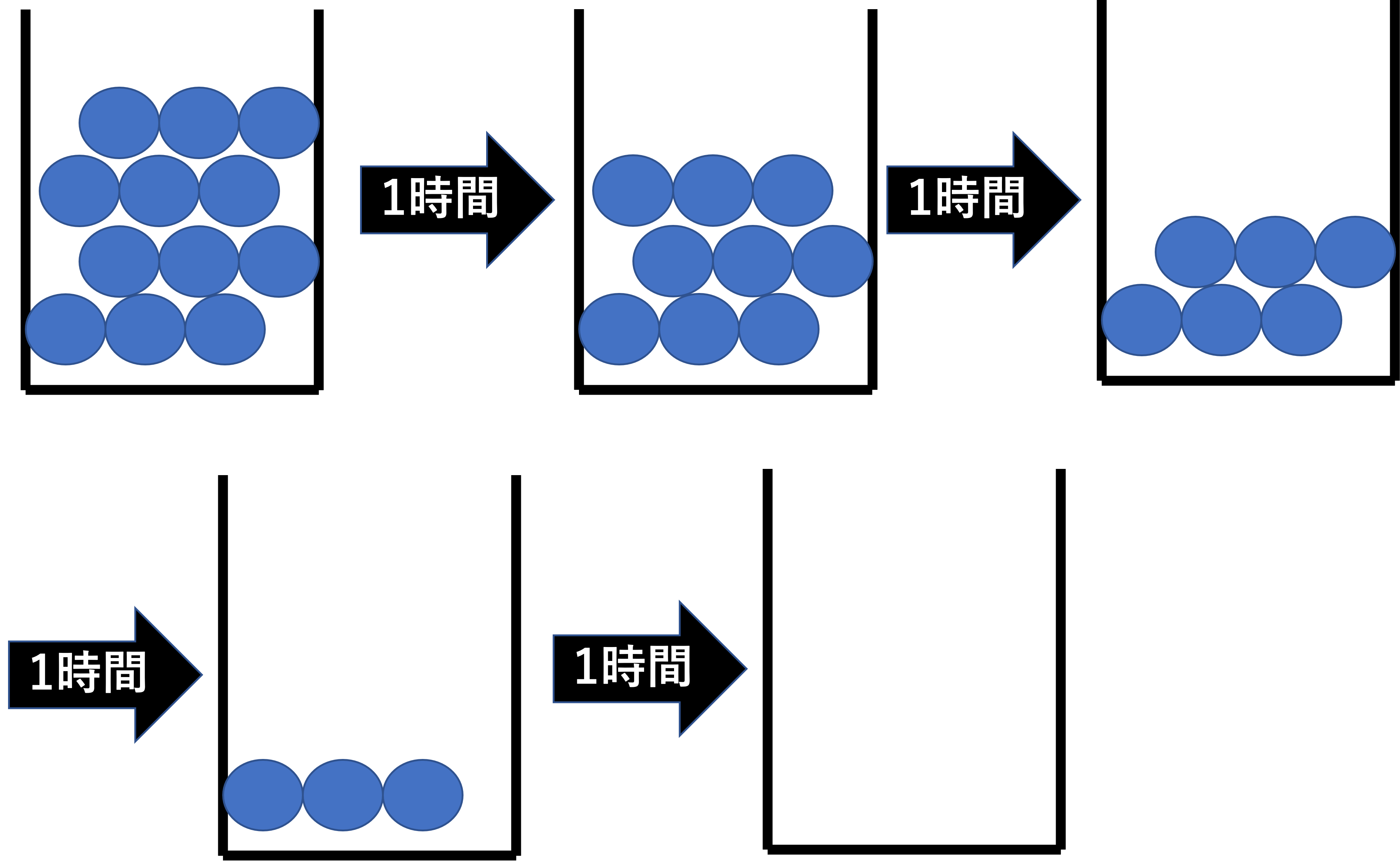 なお、式に代入してもいいですし、このグラフからもわかるように半減期は4時間後となります。