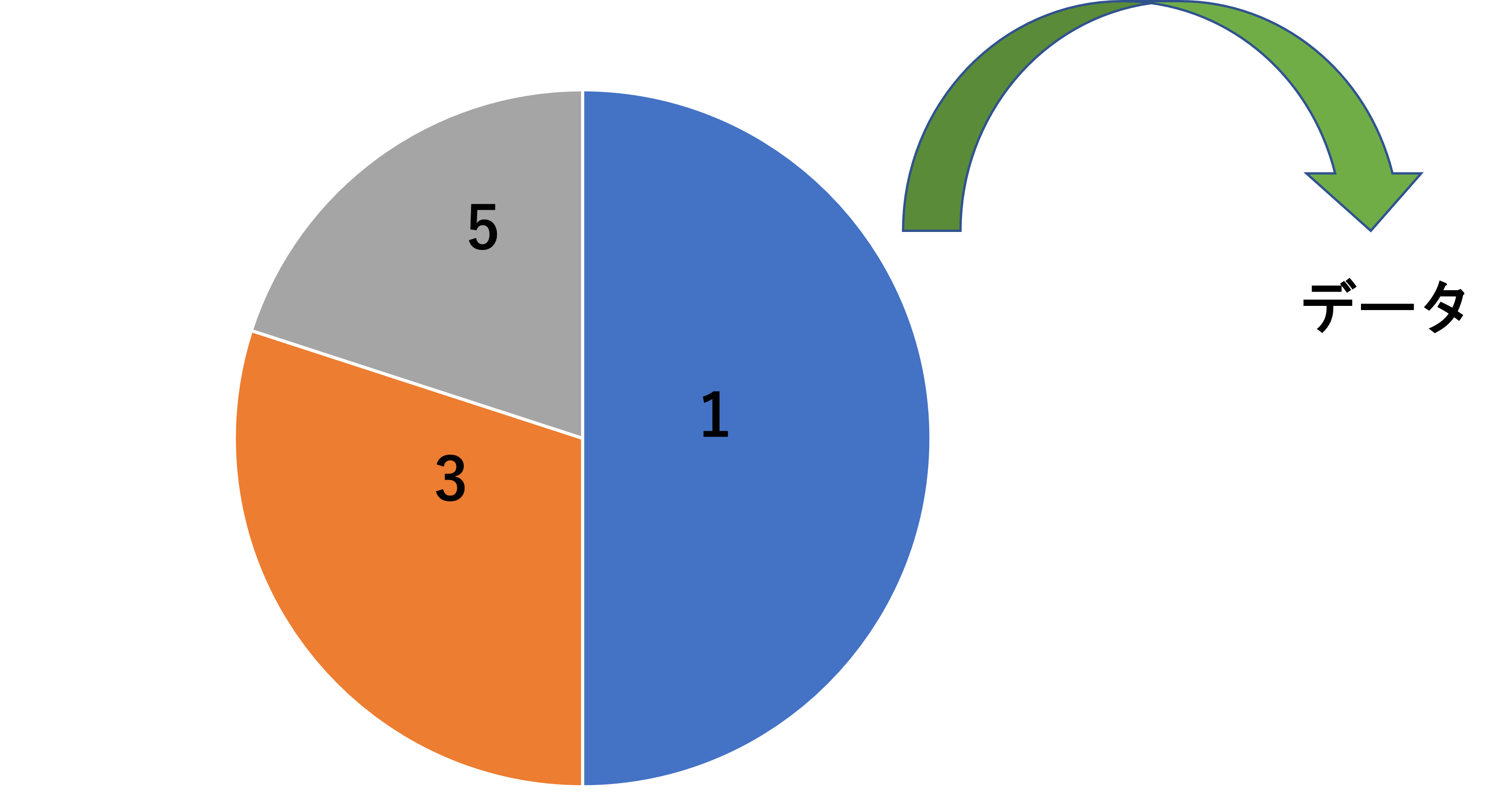 ドラえも〇の四次元ポケットがあったとする。四次元ポケットの中に、「1」、「3」、「5」と書かれたくじが無限に入っているが、1が出る確率は50%、3が出る確率は30%、5が出る確率は20%であるという。この四次元ポケットから、くじを引く作業を行う。
