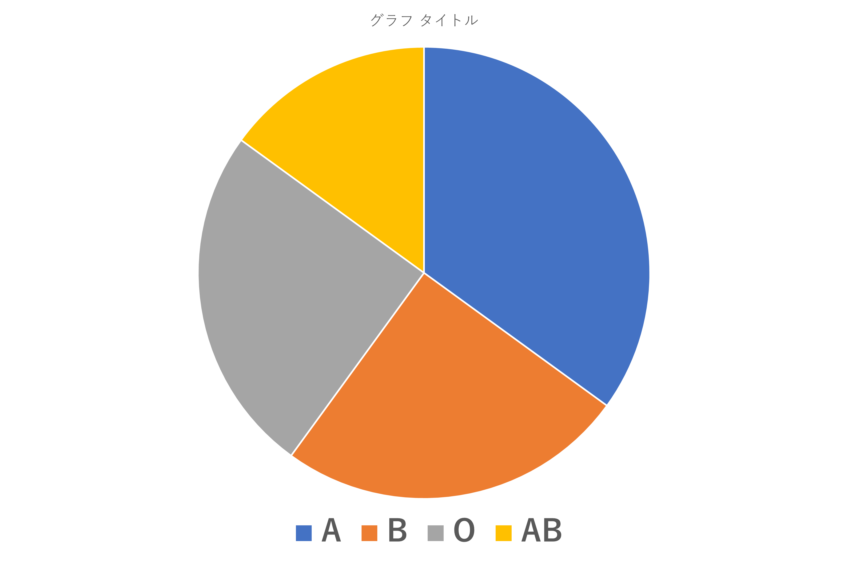 次に、A14セルに「A」、A15セルに「B」、A16セルに「O」、A17セルに「AB」、B13には「度数」と入れておきます。