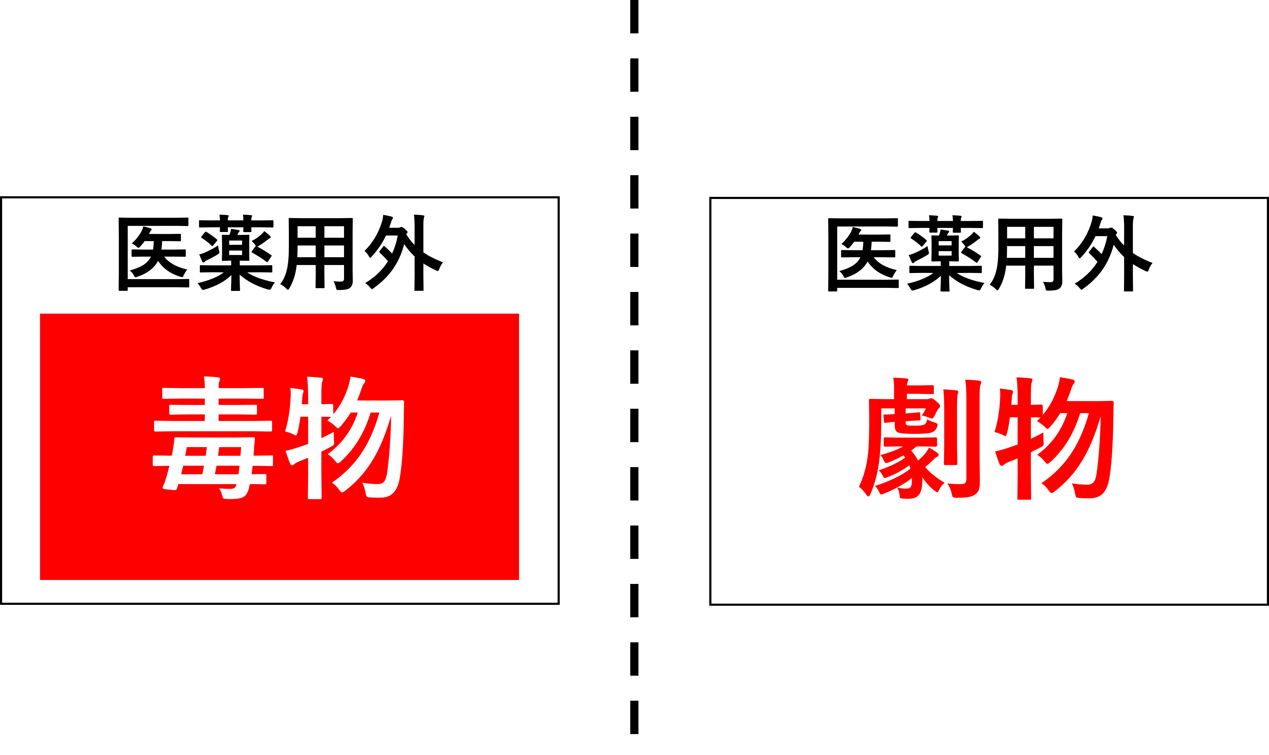 毒物は「医薬用外」の文字及び赤地に白色をもつて「毒物」の文字、劇物;「医薬用外」の文字及び白地に赤色をもつて「劇物」の文字の表示が必要です。