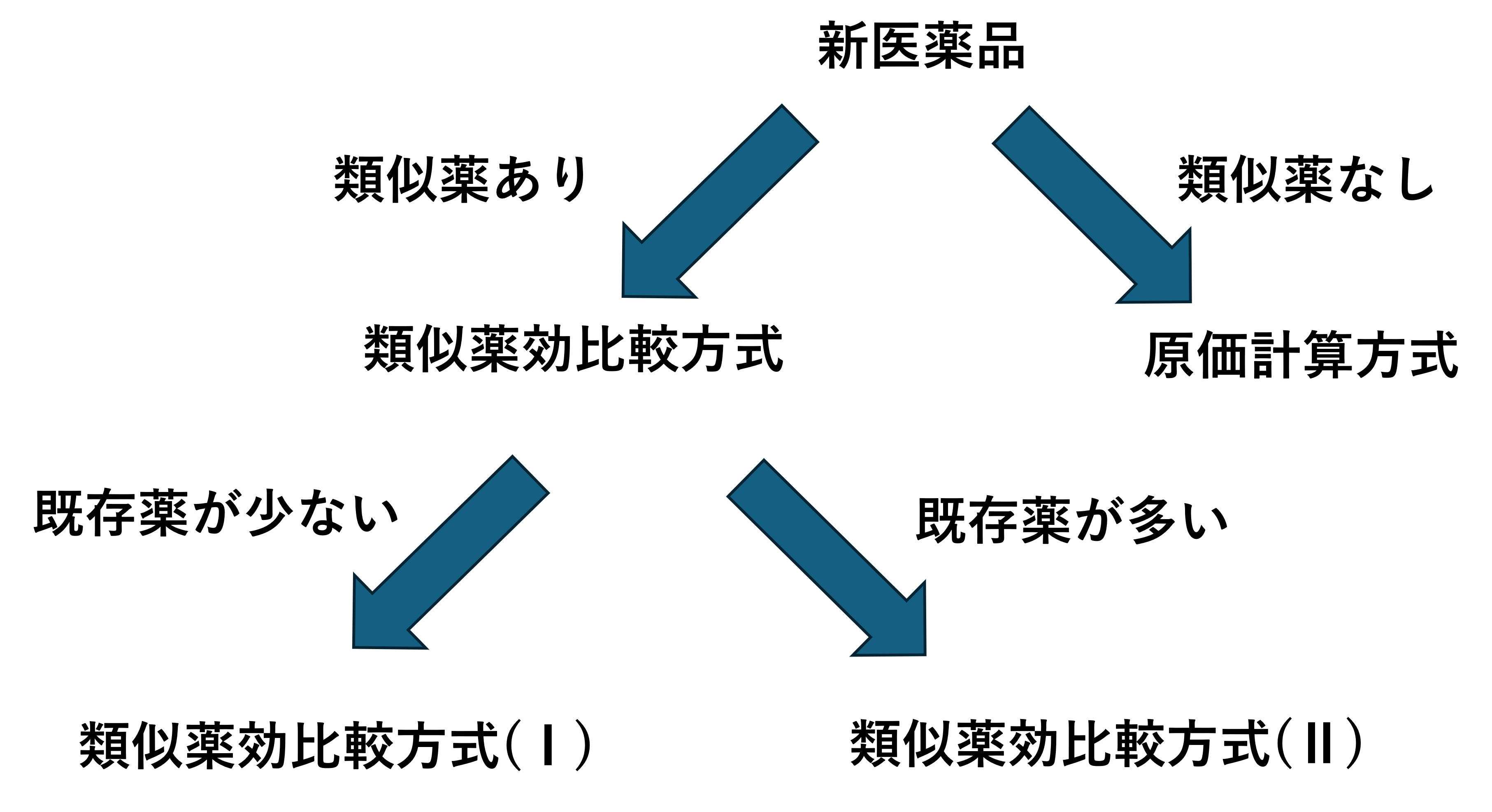 新薬の薬価算定はざっくりと以下のようなフローチャートに基づき大きく3つにわけられます。