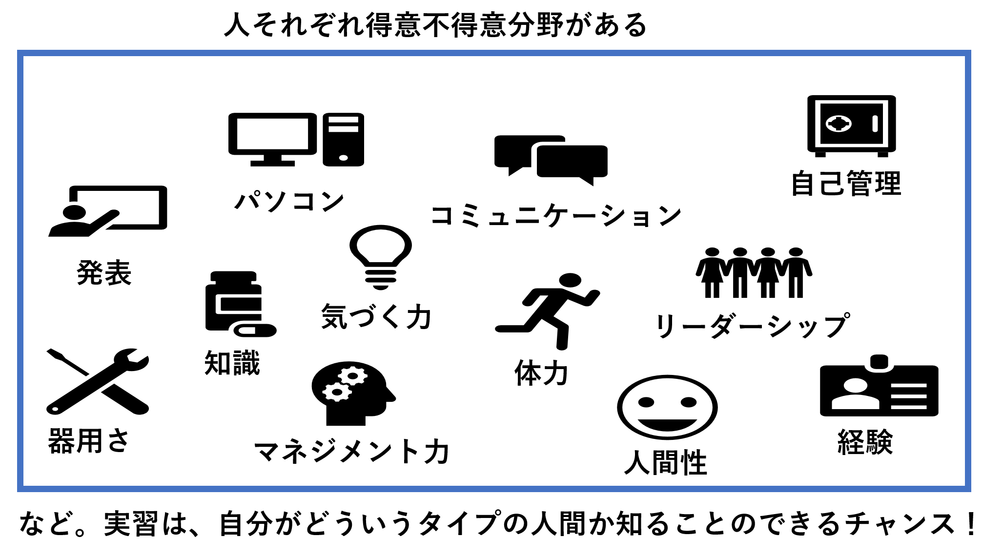 実習をした時には、自分は何が得意で、何が苦手なのかを意識することで、将来の仕事におけるミスマッチを防ぐことができます。あなたも実習をした時に意識してみて下さい。