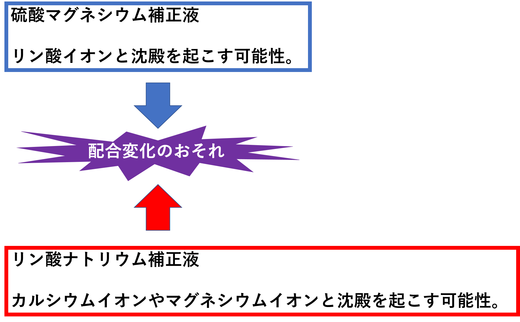 まぁそれはともかく、硫酸マグネシウム補正液とリン酸ナトリウム補正液は、添付文書上、相思相愛!先生に問い合わせし、二人(硫酸マグネシウム補正液とリン酸ナトリウム補正液)はお別れとなりました。