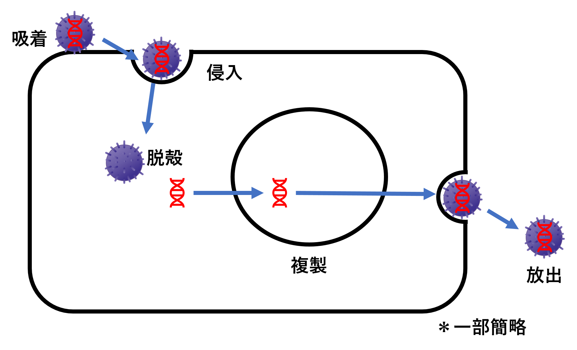 ラゲブリオ(モルヌピラビル)の作用機序の前に、新型コロナウイルスの増殖方法について簡単に確認しておく。